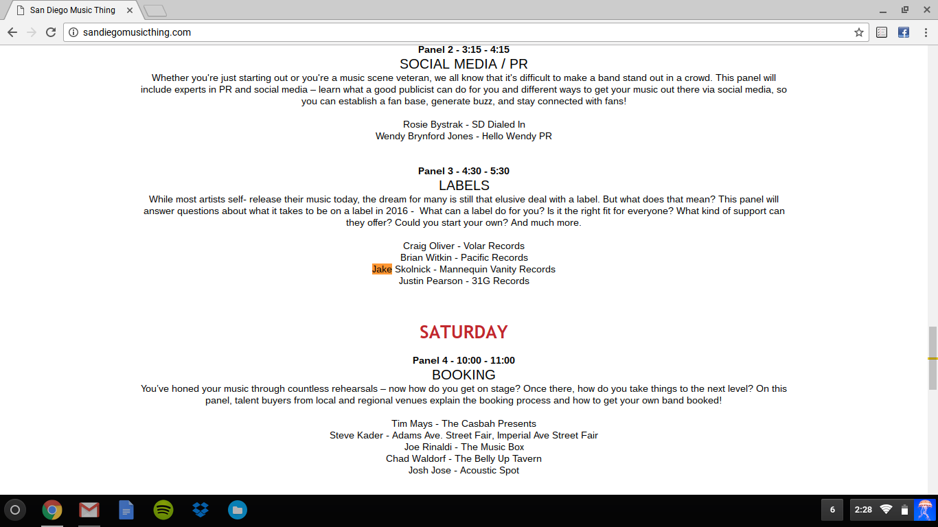 Our very own Jake Skolnick will be one of the speakers at the Label panel for San Diego Music Thing Friday 11/11 (tomorrow) at 4:30pm. Stop by and say hello! The panels are at the Chuckalek Biergarten (3139 University Ave) and they will be free and all ages.